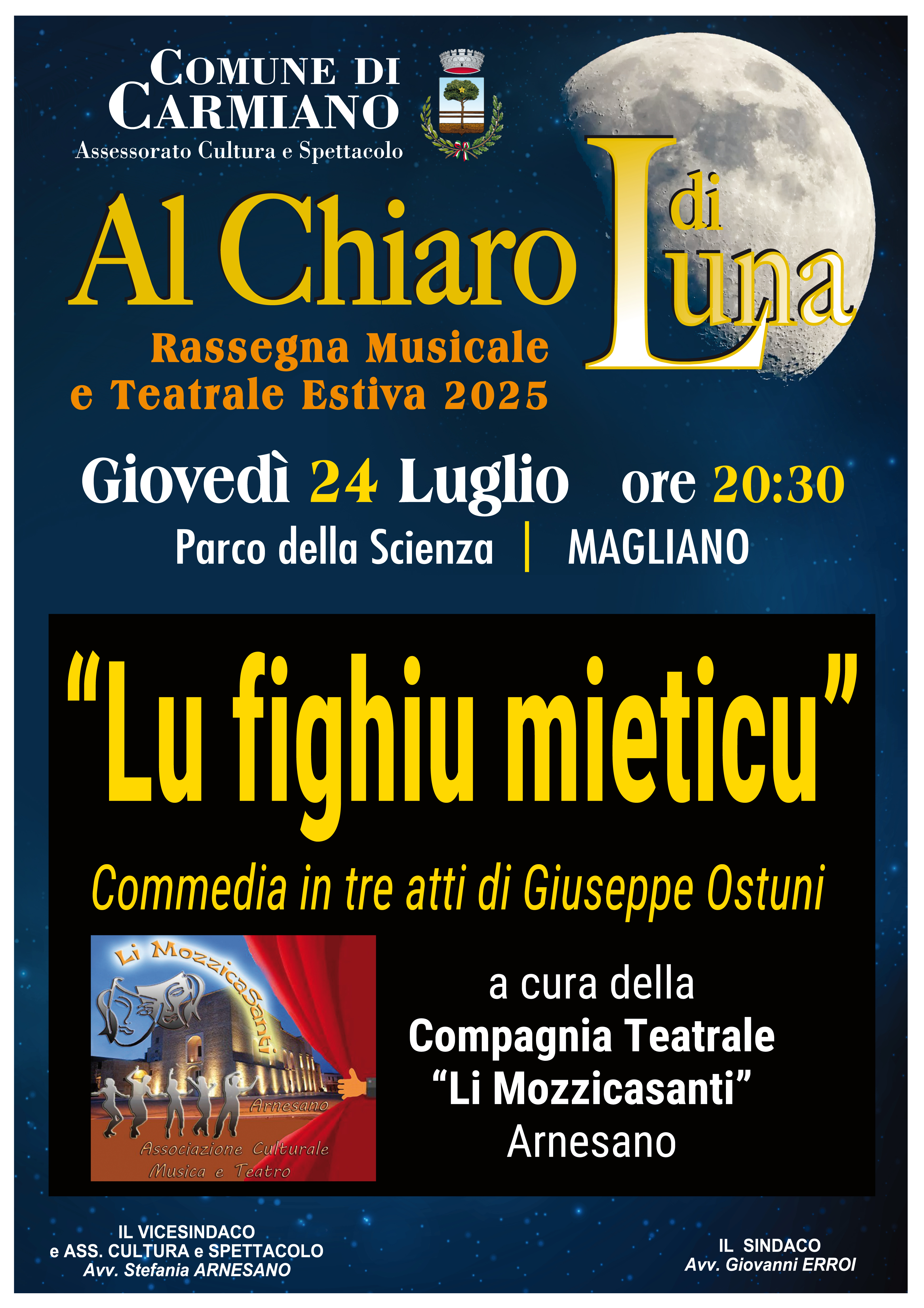 Si terrà sabato 20 settembre 2025, alle ore 20.30, presso il Parco della Scienza – Magliano – il 3° Gran Gala della Danza, spettacolo conclusivo della Rassegna teatrale e musicale estiva AL CHIARO DI LUNA, organizzata dall’Assessorato alla Cultura del Comune di Carmiano.